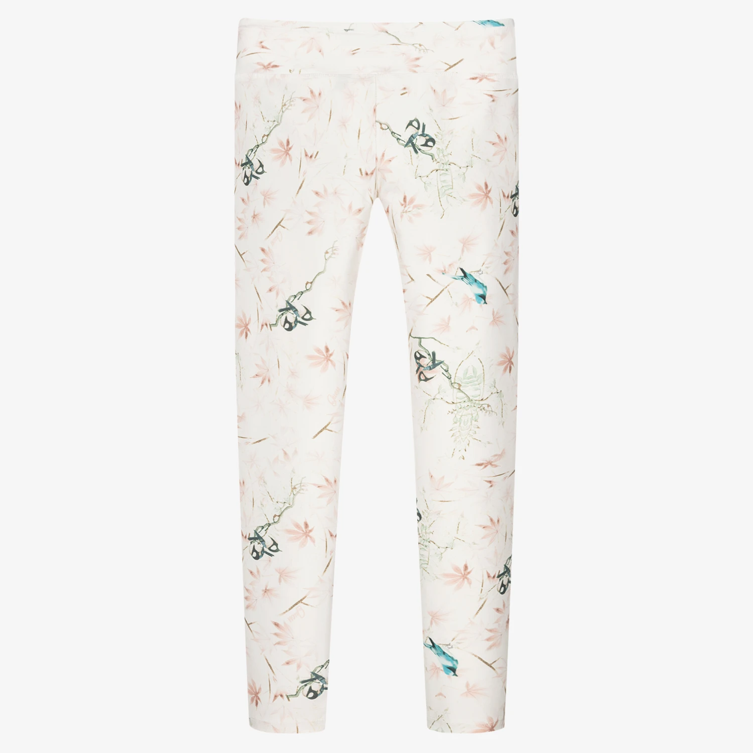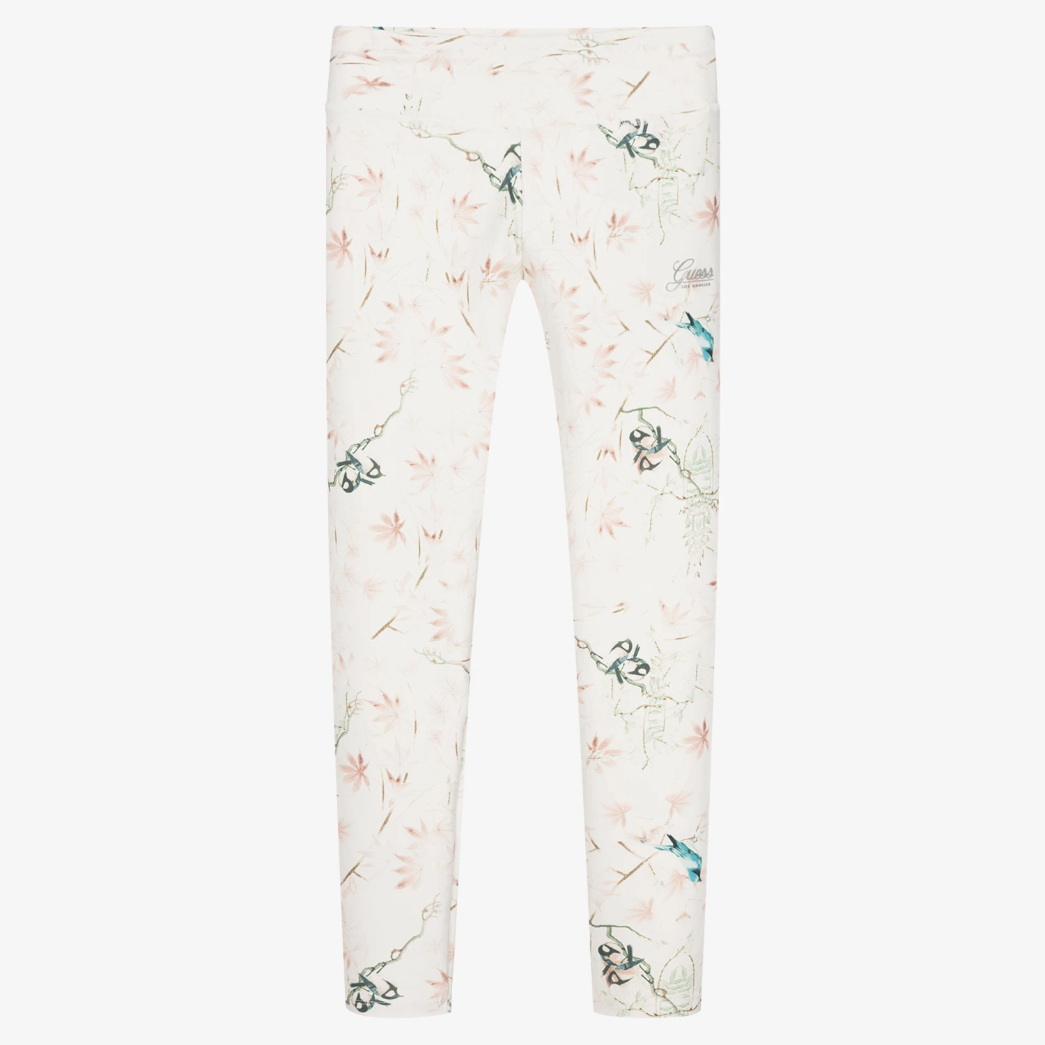 Make an activewear statement with these sporty ivory leggings for teen girls by Guess, with a pink autumnal leaf and blue bird pattern. They have a logo appliqué on one leg and are made in stretchy lycra, ideal for exercise or even just lounging around the house.