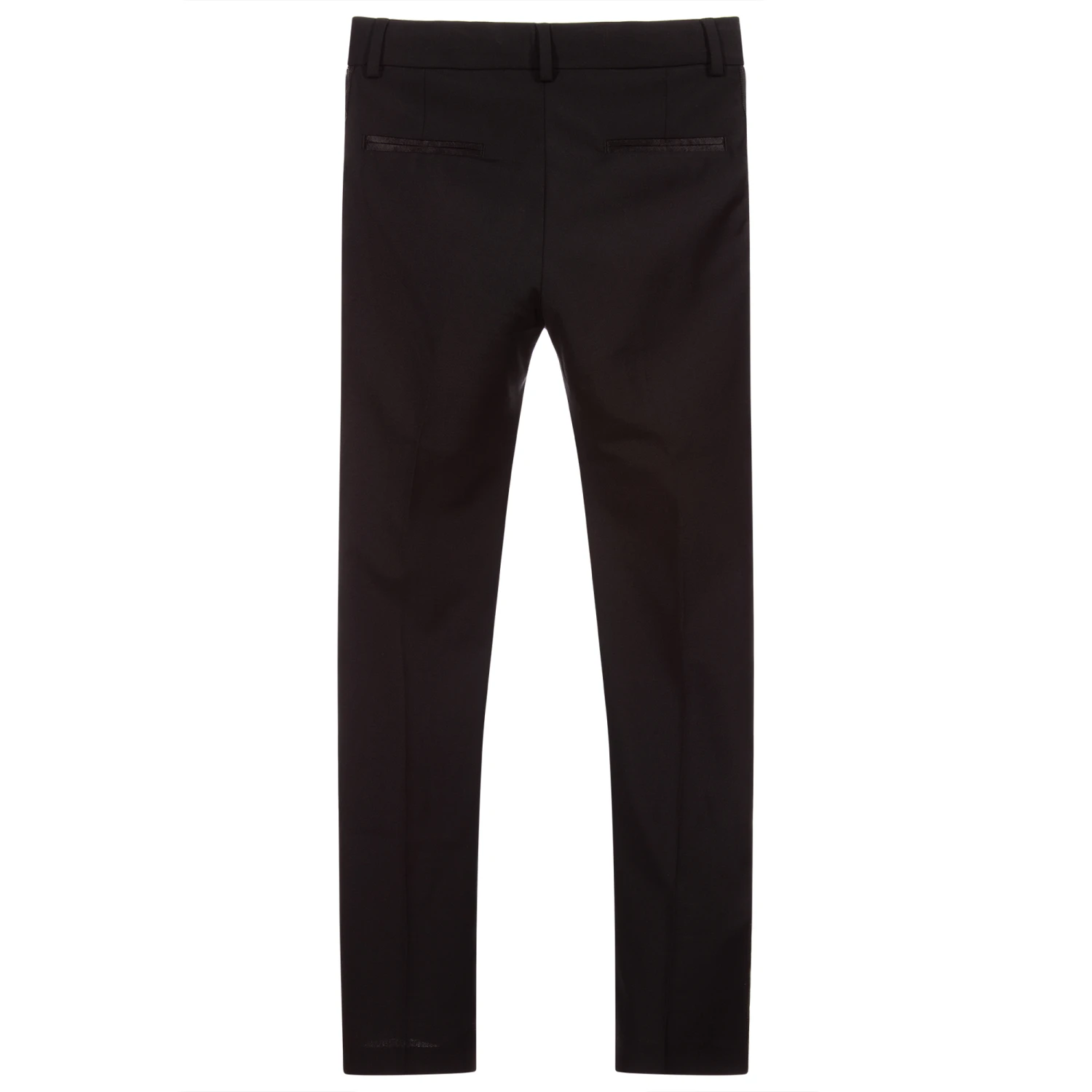 Black slim-fit trousers for teen girls from KARL LAGERFELD KIDS, made in a luxurious and lightweight wool blend. They have rubberised logo tape on the side seams, with satin trim on the front and back pockets.