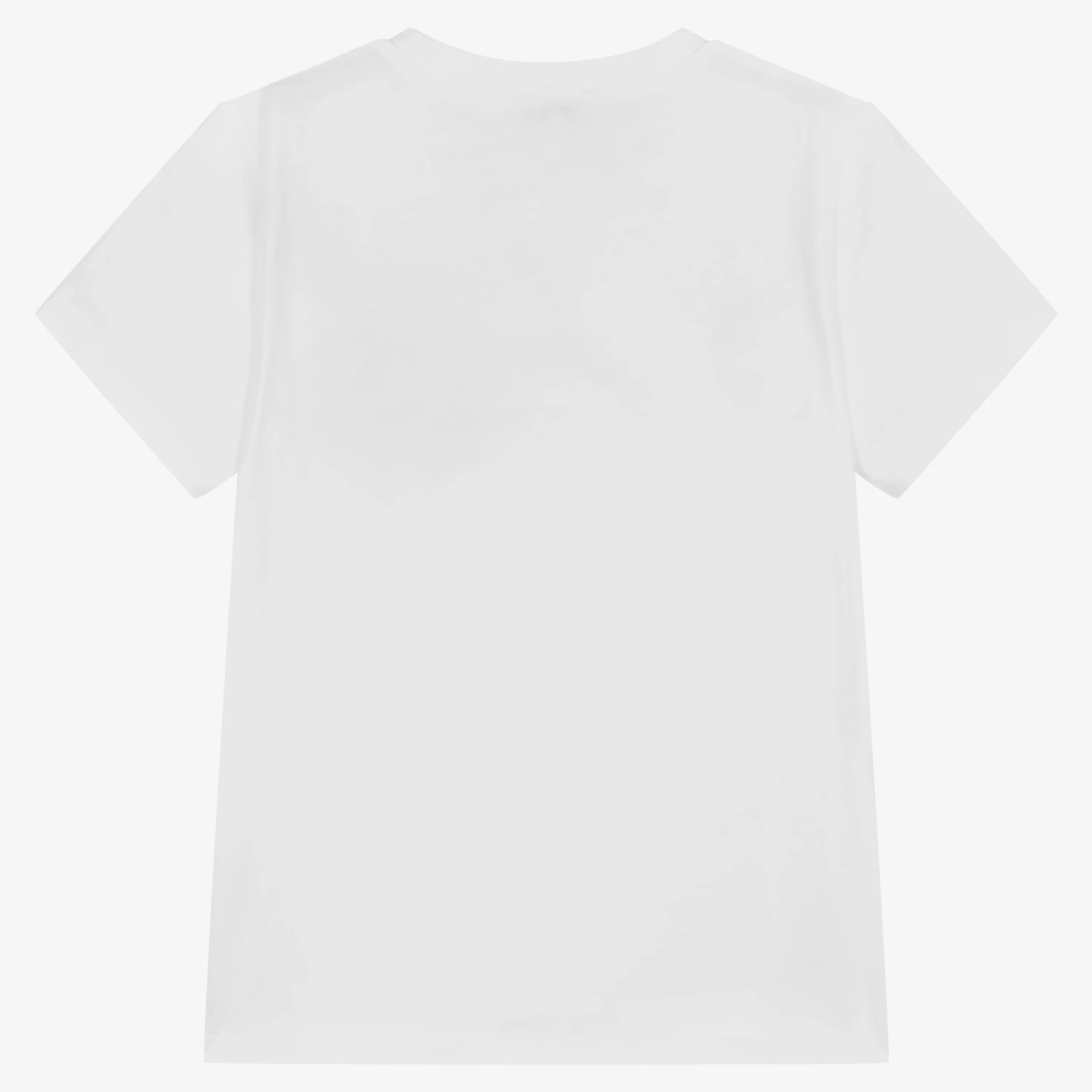 White cotton T-shirt for teen girls by MARC JACOBS, accented with a retro-style crochet pocket at the chest. The brand’s name is embroidered above the pocket in pink for added designer appeal and the style has a classic crewneck.