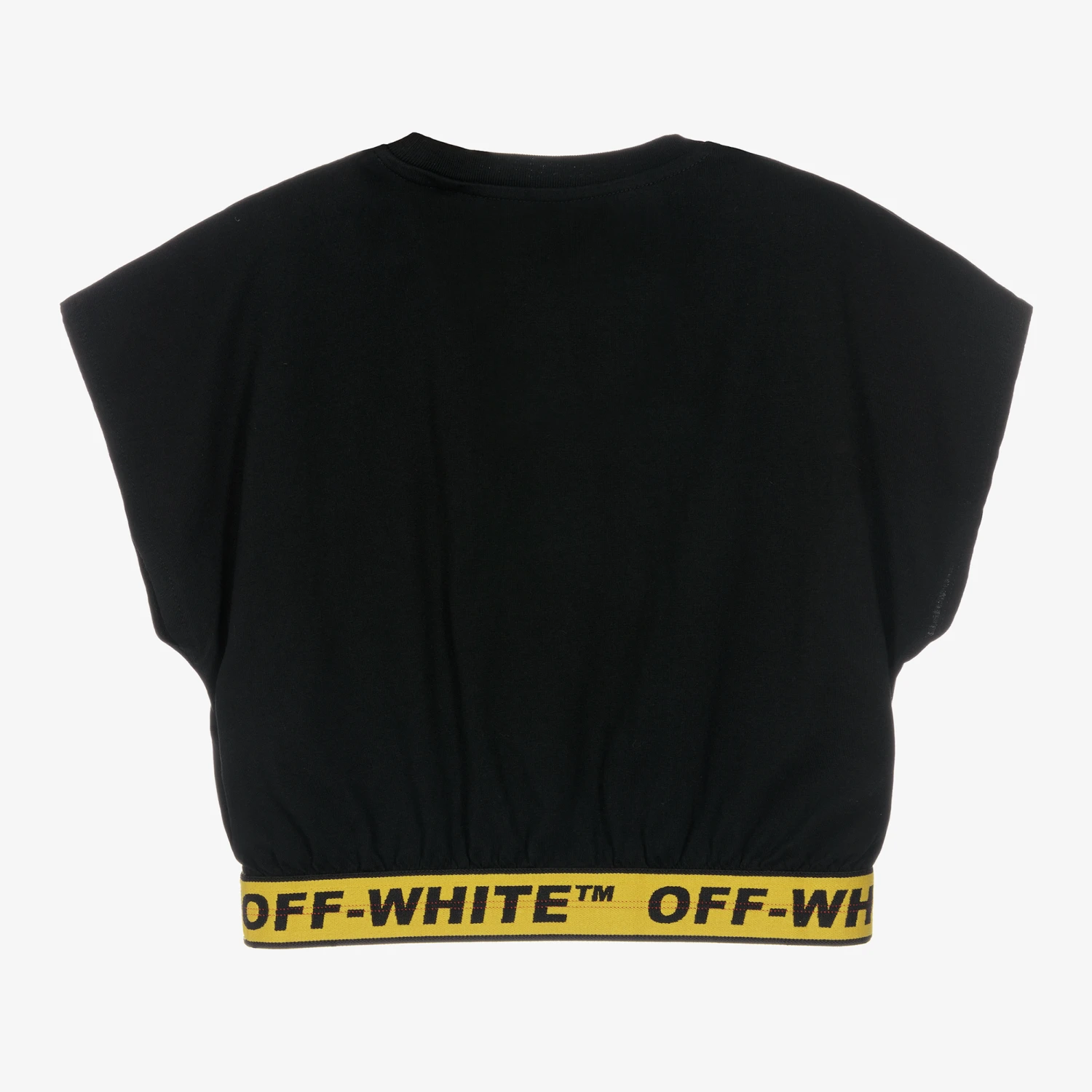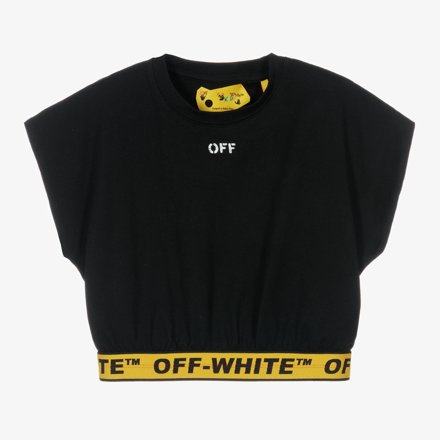 Designed by luxury brand Off-White, this boxy fit black T-shirt is made for teen girls. Simple yet stylish, it has the designer’s iconic Off Stamp logo on the chest for a recognisable look. Industrial logo taping details the cropped hem, adding a contemporary twist in bold, statement colours. Made in soft organic cotton jersey for its eco impact, it has wide shoulders to create an effortlessly cool silhouette.