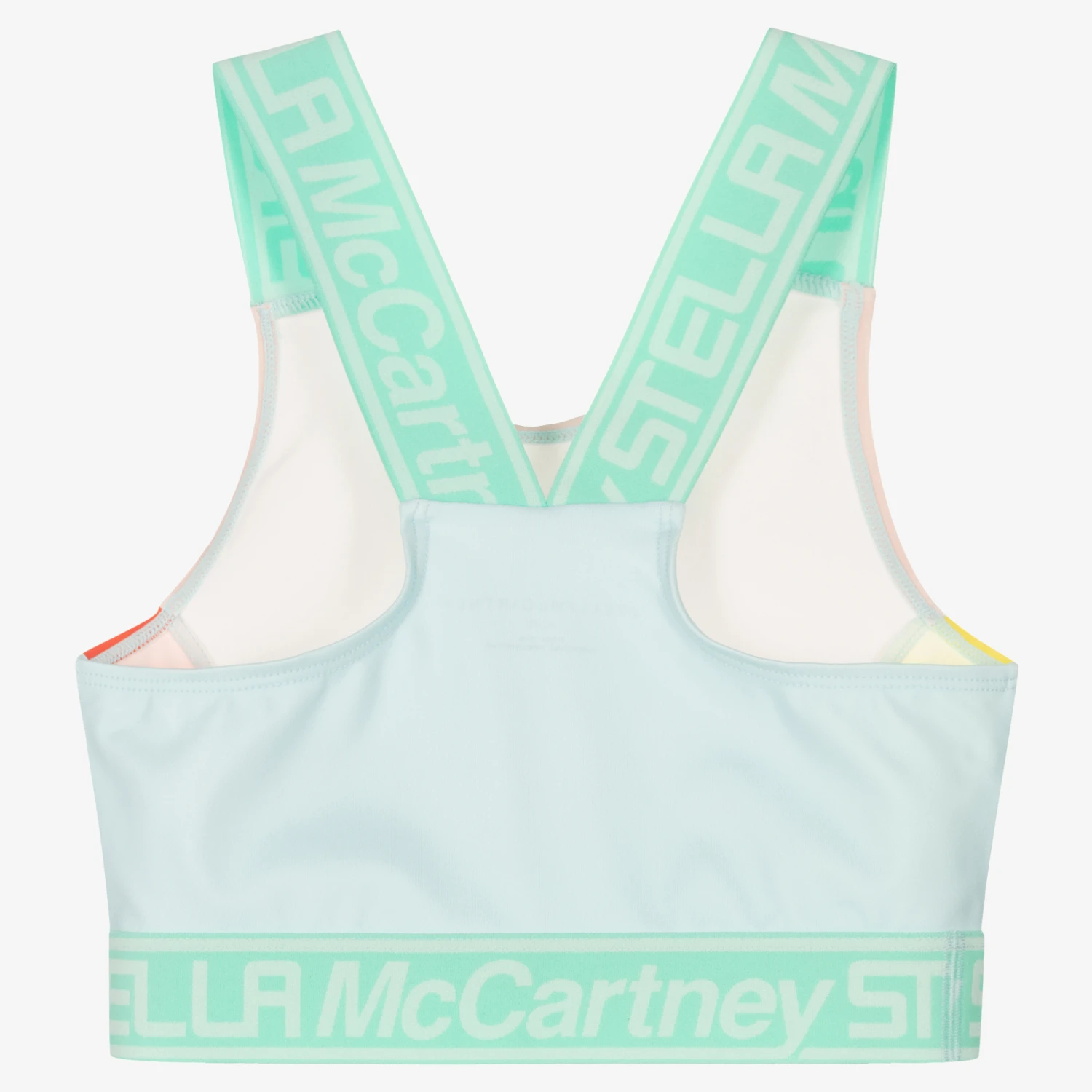 From Stella McCartney Kids, a colourblock sports top for teen girls in pink, pale blue, yellow and red. Made with recycled fibres, this technical jersey crop top is fast-drying, moisture-wicking and breathable for comfort. For a designer finish, it has stretchy green trims with a white jacquard logo design. The Stella McCartney fit can be quite small so choose a size up if you want room to grow.