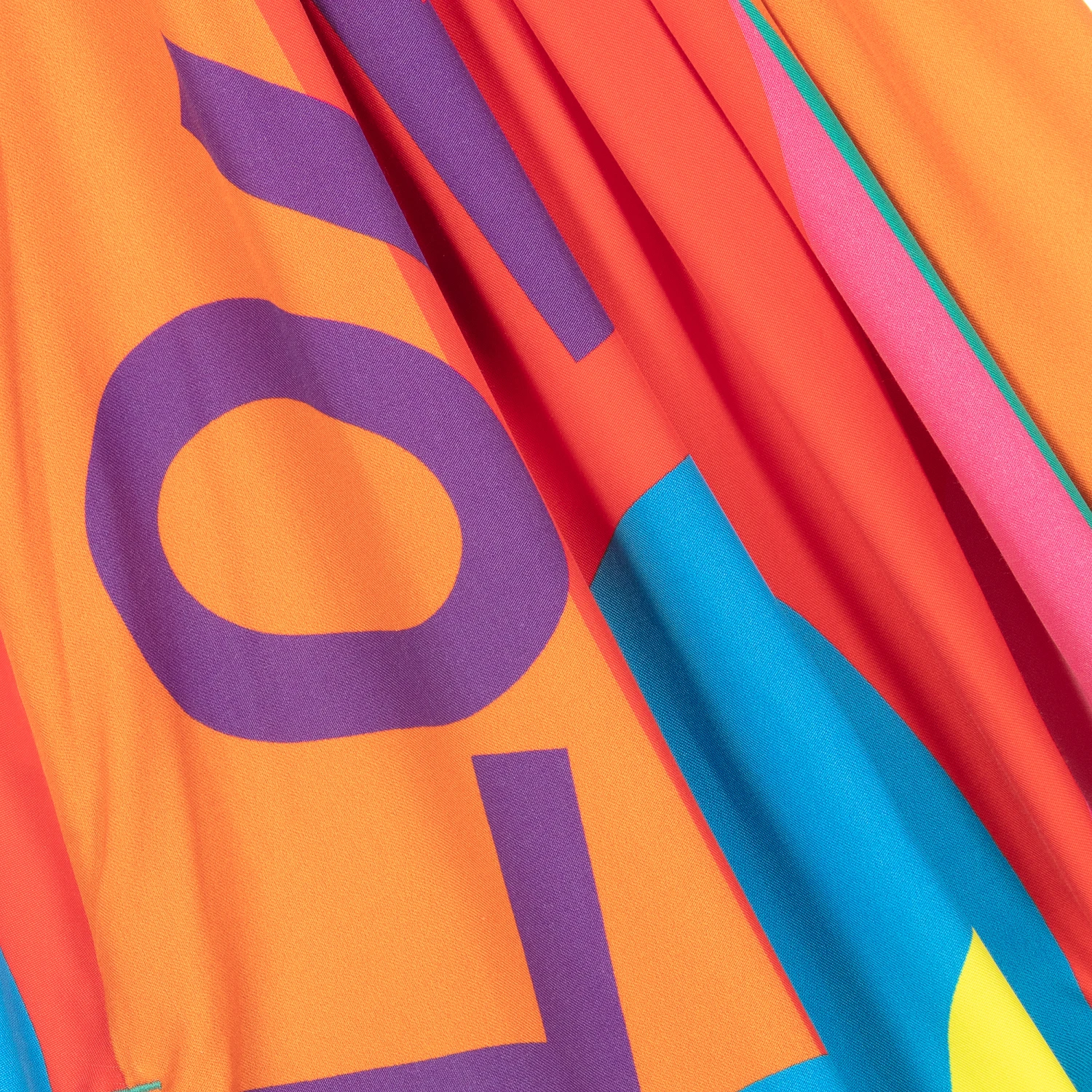 From the brand’s ‘Pop’ collection, a multicoloured dress for teen girls by Stella McCartney Kids. Made from a sustainably sourced viscose blend, this statement piece is printed with large abstract florals, combined with a bold ‘LOVE’ slogan throughout. In an easy and flowing silhouette, it has colourful beads on the neckline and shoulder straps, and concealed pockets on the side seams. The Stella McCartney fit can be quite small so choose a size up if you want room to grow.